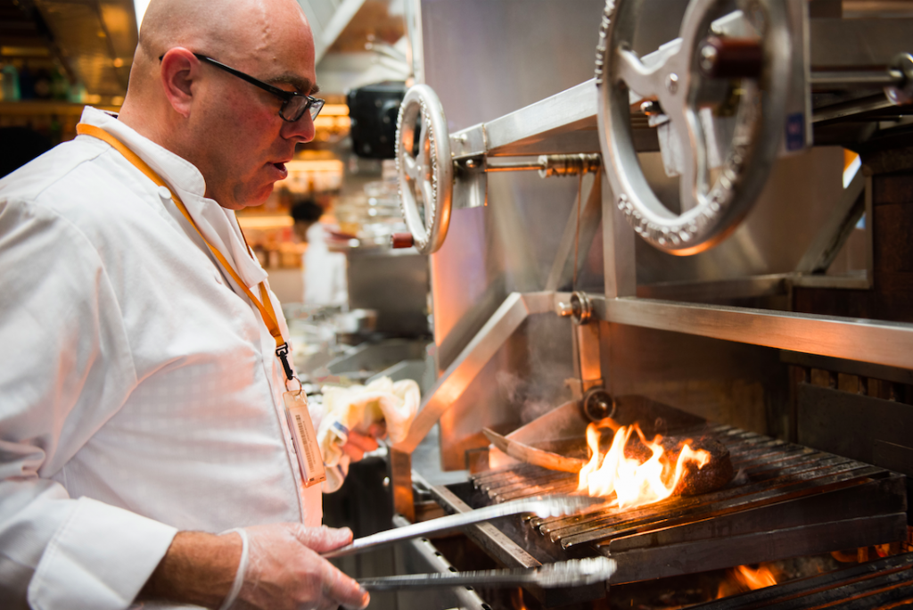 A custom-designed wood burning grill is the centerpiece of the DAILY kitchen, where the use of seasonal woods, such as peach or apple wood for pork, mesquite for fish, or hickory for beef, will enhance the flavors of the restaurant’s menu.
