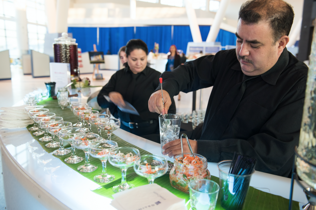 Guests were invited to sample the wares that travelers will be treated to from Terminal C-North restaurants, including a beef and ahi tuna carving station from Shepherd’s Ember, the Vietnamese shrimp boil with fried rice from Bam Bam, a Vietnamese-Cajun beer garden created by Chef John Nguyen, a short rib panini with burrata and a port wine demi-glace from Olio, a panini bar by Chef Monica Pope, a red and white pizza from Pala, a Neapolitan-style pizza restaurant helmed by Chef Ryan Pera, and a Gulf shrimp ceviche guacamole from Vida Taqueria by Roland Laurenzo.