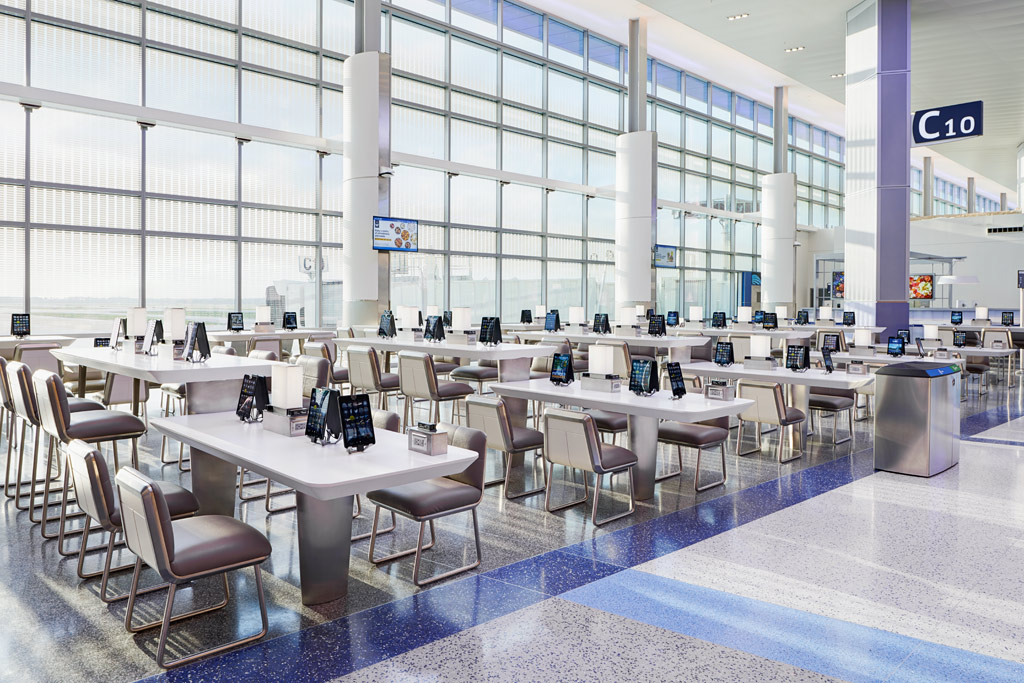 Tech-enhanced, our gate lounge removes physical and digital boundaries to connect travelers with all the terminal has to offer. OTG’s 2U™ feature allows customers to order food, retail and other amenities from an OTG iPad and have it delivered, whether within a restaurant or at the gate. With over 1,500 iPads throughout the new C-North, guests will stay fully charged with both power and USB outlets at every seat.